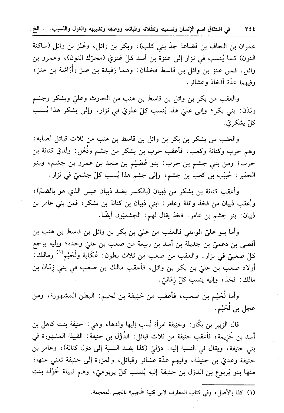 والعقب من بكر بن وائل بن قاسط بن هنب من الحارث وعليّ ويشكر وجشم وبدن : بني بكر ؛ وإلى عليّ هذا يُنسب كلّ علويّ في نزار ؛ وإلى يشكر هذا يُنسب كلّ يشكريّ .