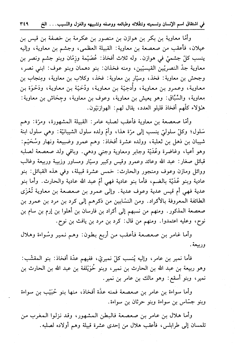 وأما هلال بن عامر بن صعصعة فالبطن المشهور ، وقد نزلوا المغرب من تلمسان إلى طرابلس ، فأعقب هلال من إحدى عشرة قبيلة وهم أولاده لصلبه .