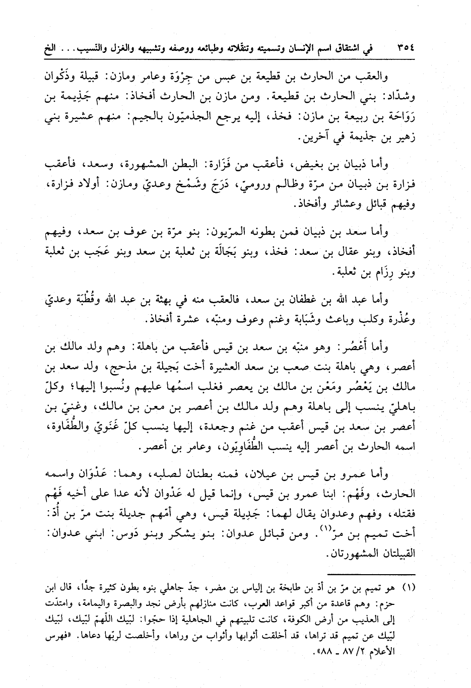 وأما ذبيان بن بغيض ، فأعقب من فزارة : البطن المشهورة ، وسعد ؛ فأعقب فزارة بن ذبيان من مرّة وظالم وروميّ ، درج وشمخ وعديّ ومازن : أولاد فزارة ؛ وفيهم قبائل وعشائر وأفخاذ .