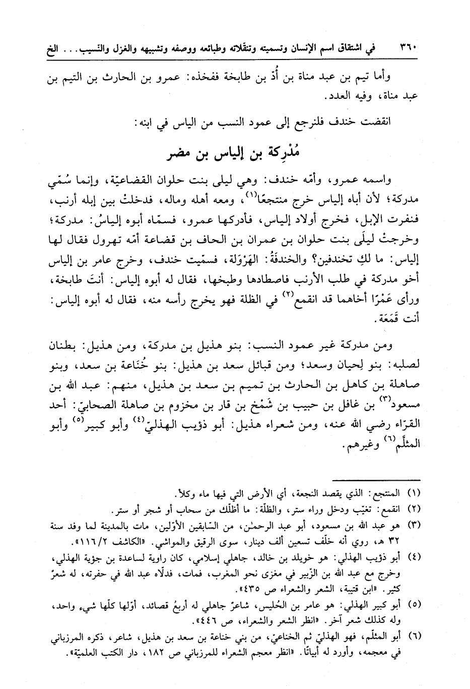 ومن مدركة غير عمود النسب : بنو هذيل بن مدركة ، ومن هذيل : بطنان لصلبه : بنو لحيان وسعد ؛ ومن قبائل سعد بن هذيل : بنو خُناعة بن سعد ، وبنو صاهلة بن كاهل بن الحارث بن تميم بن سعد بن هذيل ؛ منهم : عبد الله بن مسعود بن غافل بن حبيب بن شمخ بن قار بن مخزوم بن صاهلة الصحابيّ : أحد القرّاء رضي الله عنه . ومن شعراء هذيل : أبو ذؤيب الهذليّ وأبو كبير وأبو المثلم وغيرهم .