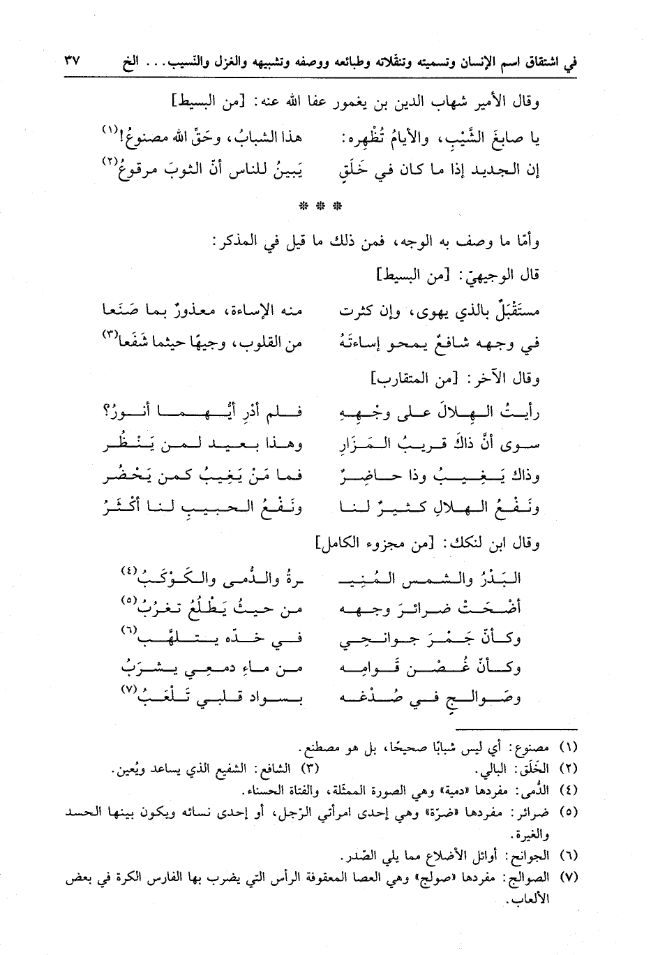 ما وصف به الوجه فمن ذلك ما قيل في المذكر . قال الوجيهيّ :