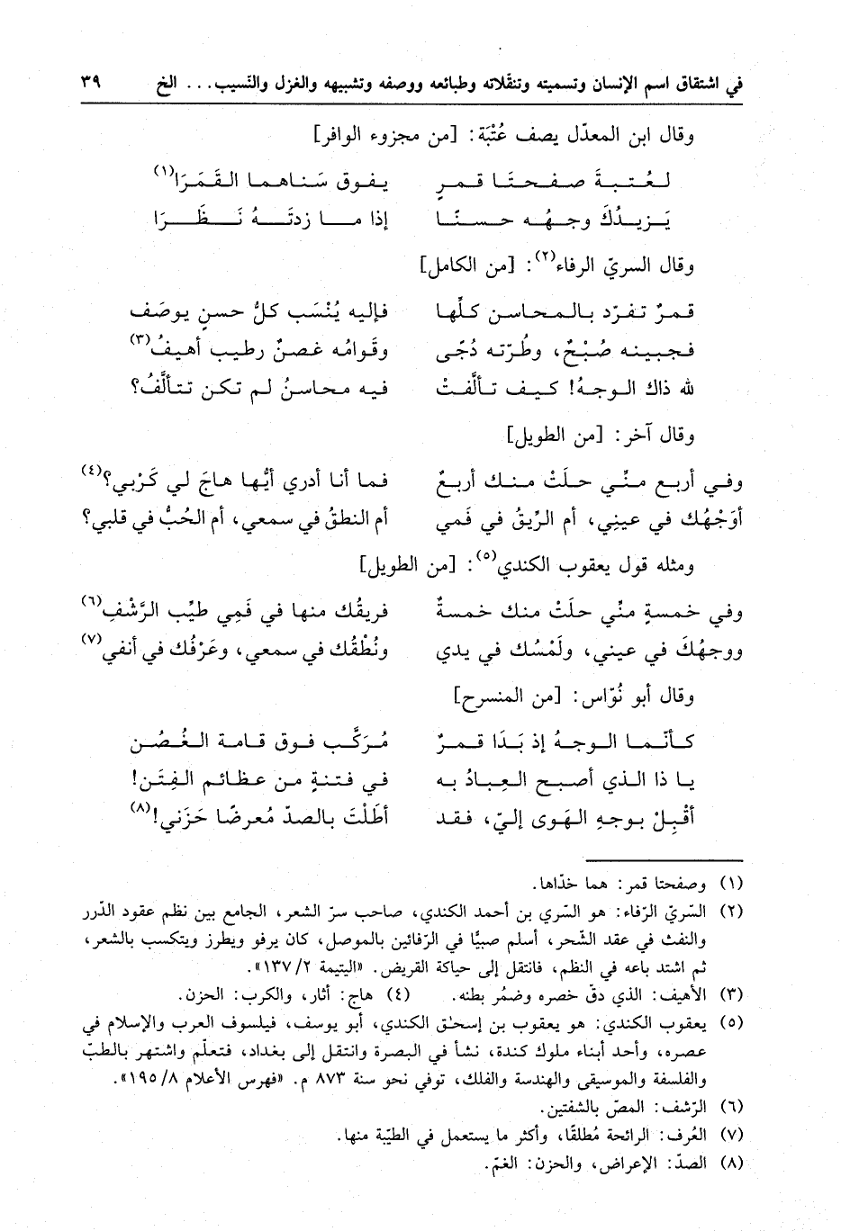 فجبينه صُبْحٌ ، وطُرّته دُجىً ، . . . وقوامه غصنٌ رطيب أهيفُ .