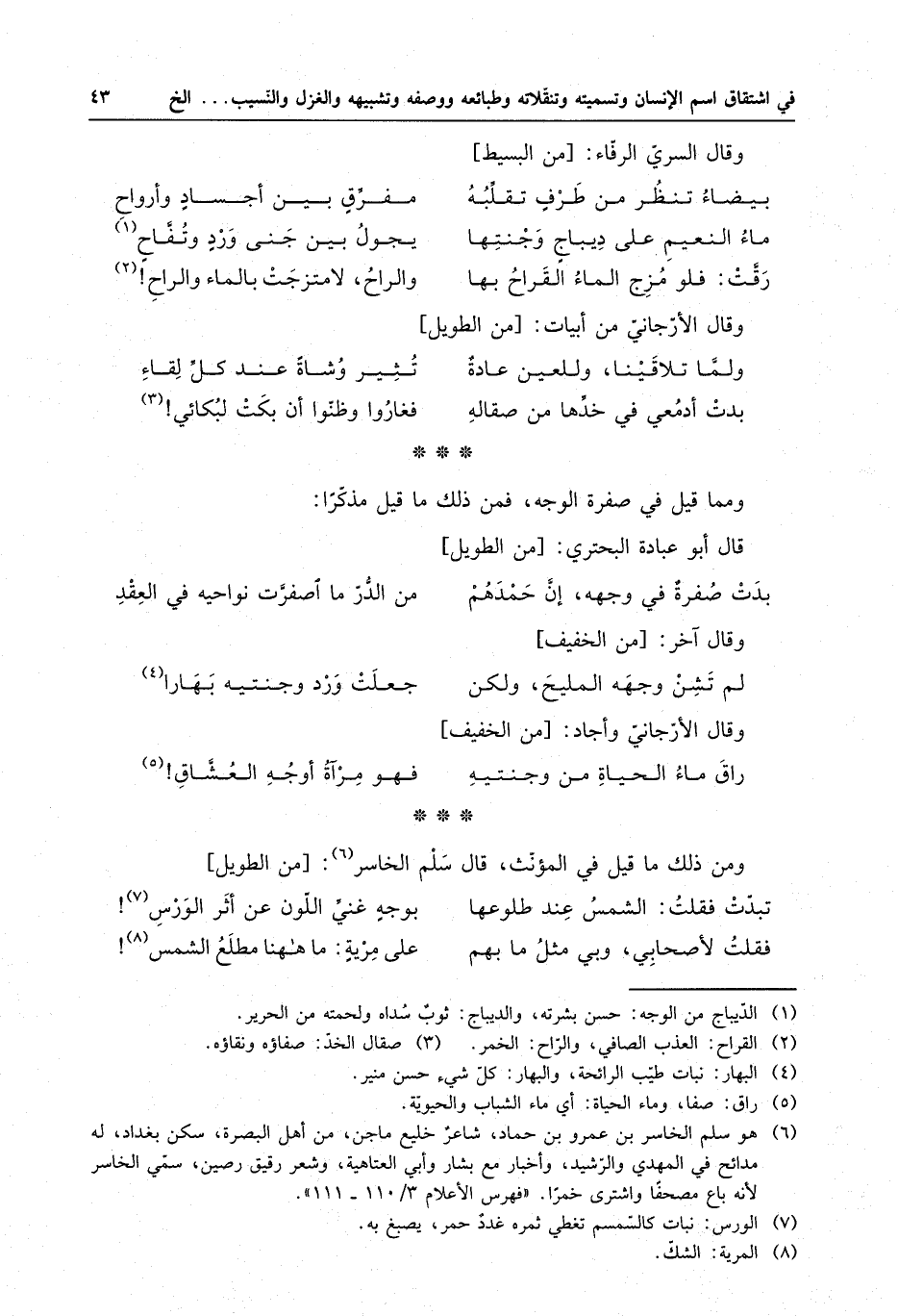 ومما قيل في صفرة الوجه ، فمن ذلك ما قيل مذكراً .