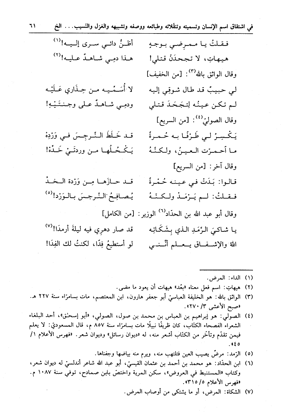 فقلت يا ممرضي بوجهٍ ، . . . أظنُّ دائي سرى إليهِ هيهاتَ ، لا تجحدنّ قتلي . . . هذا دمي شاهدٌ عليه