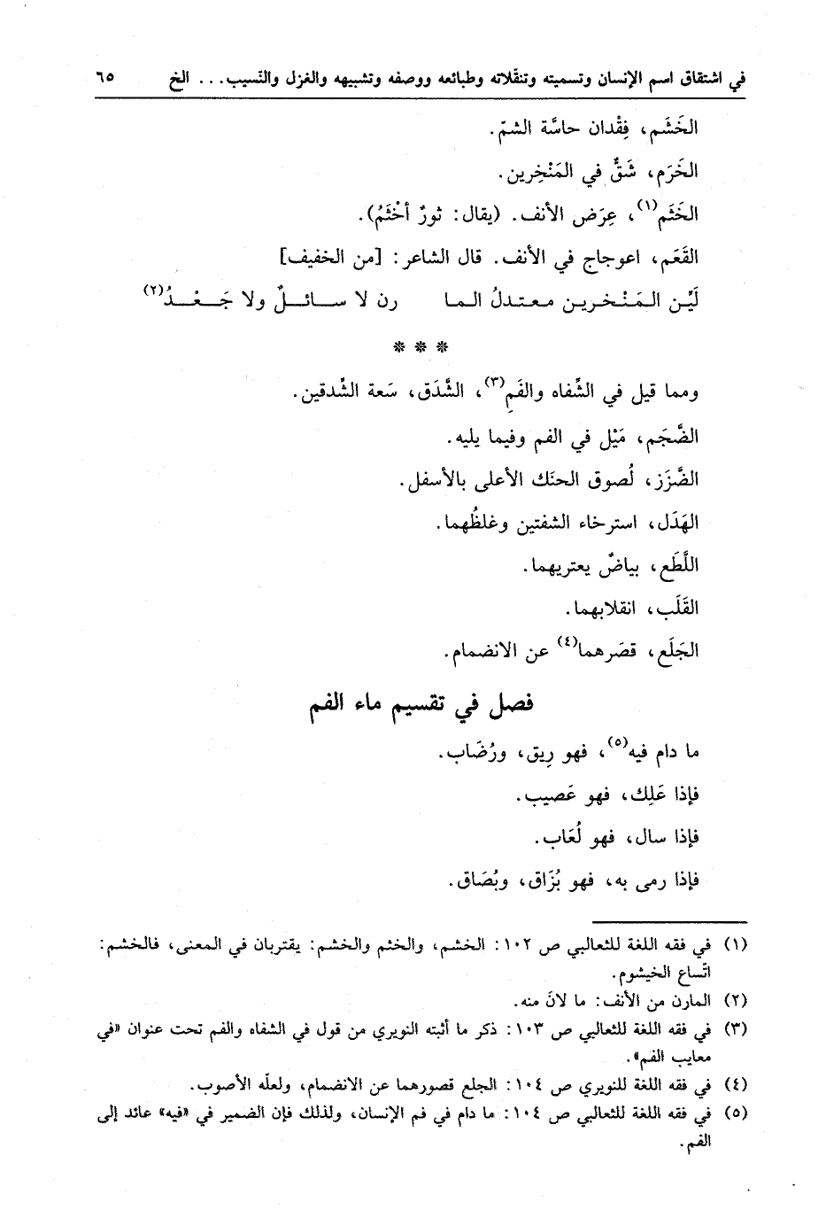 فصل في تقسيم ماء الفم