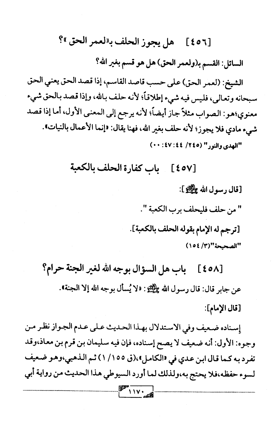 [456] هل يجوز الحلف بـ «لعمر الحق»؟