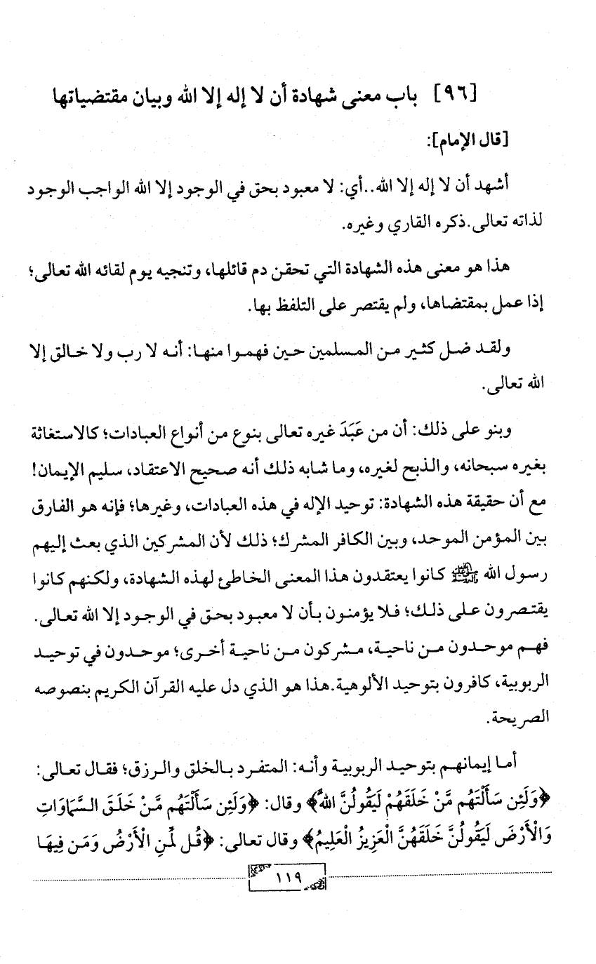 [96] باب معنى شهادة أن لا إله إلا الله وبيان مقتضياتها