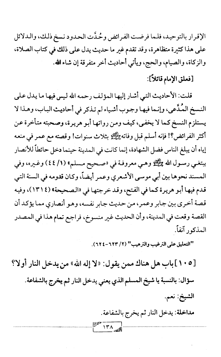 سؤال: بالنسبة يا شيخ المسلم الذي يعني يدخل النار ثم يخرج بالشفاعة.