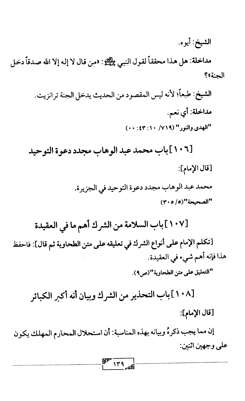 [107] باب السلامة من الشرك أهم ما في العقيدة