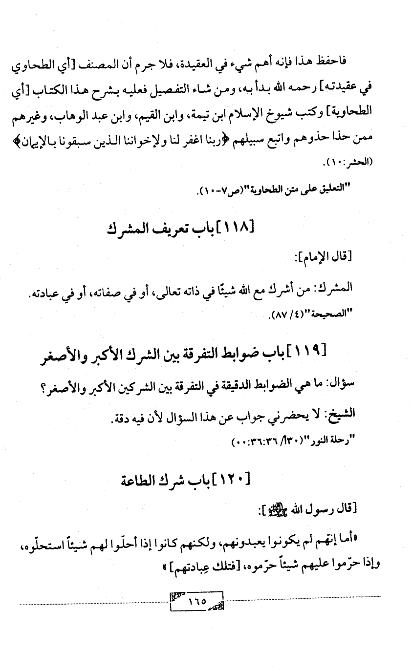 [119] باب ضوابط التفرقة بين الشرك الأكبر والأصغر