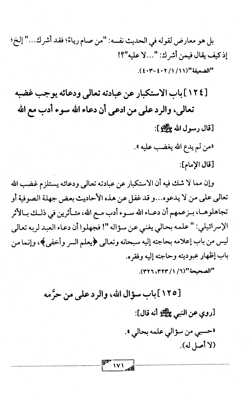 [124] باب الاستكبار عن عبادته تعالى ودعائه يوجب غضبه تعالى، والرد على من ادعى أن دعاء الله سوء أدب مع الله