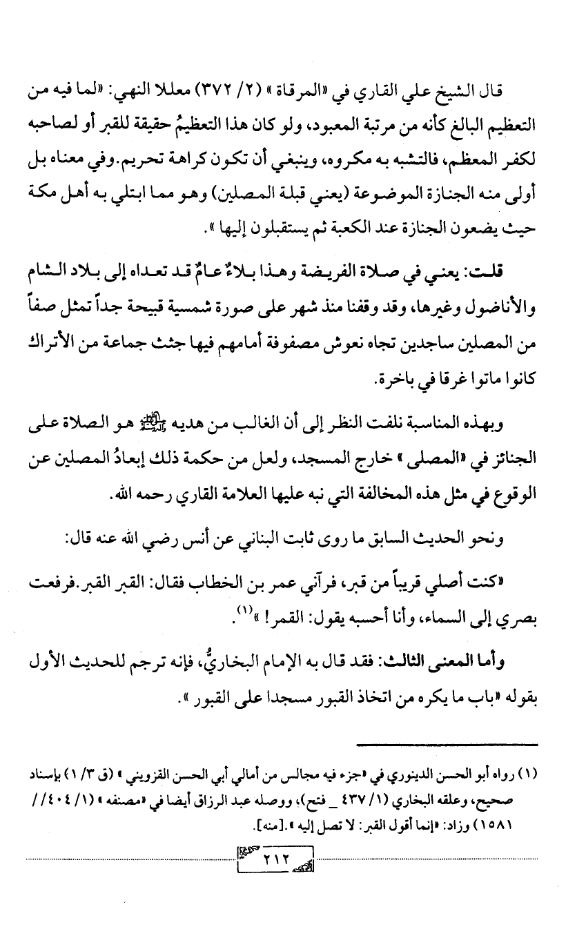 (¬1) رواه أبو الحسن الدينوري في «جزء فيه مجالس من أمالي أبي الحسن القزويني» (ق 3/ 1) بإسناد صحيح، وعلقه البخاري (1/ 437 _ فتح)، ووصله عبد الرزاق أيضا في «مصنفه» (1/ 404// 1581) وزاد: «إنما أقول القبر: لا تصل إليه». [منه].