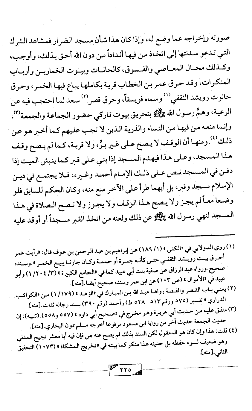 (¬1) روى الدولابي في «الكنى» (1/ 189) عن إبراهيم بن عبد الرحمن بن عوف قال: «رأيت عمر أحرق بيت رويشد الثقفي حتى كأنه جمرة أو حممة وكان جارنا يبيع الخمر».وسنده صحيح. ورواه عبد الرزاق عن صفية بنت أبي عبيد كما في «الجامع الكبيرة» (3/ 204/1) وأبو عبيد في «الأموال» (- صلى الله عليه وسلم - 103) عن ابن عمر وسنده صحيح أيضا. [منه].