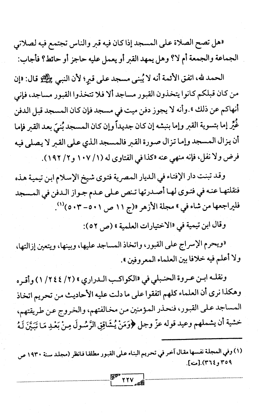 (¬1) وفي المجلة نفسها مقال آخر في تحريم البناء على القبور مطلقا فانظر (مجلد سنة 1930 ص 359 و364). [منه].