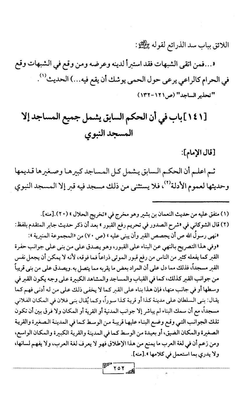 [141] باب في أن الحكم السابق يشمل جميع المساجد إلا المسجد النبوي