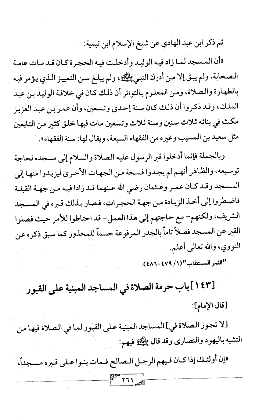 [143] باب حرمة الصلاة في المساجد المبنية على القبور