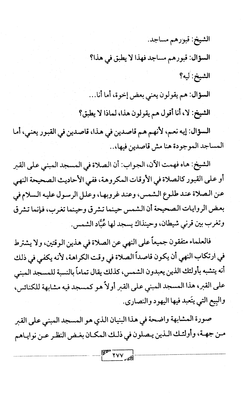 الشيخ: قبورهم مساجد.
