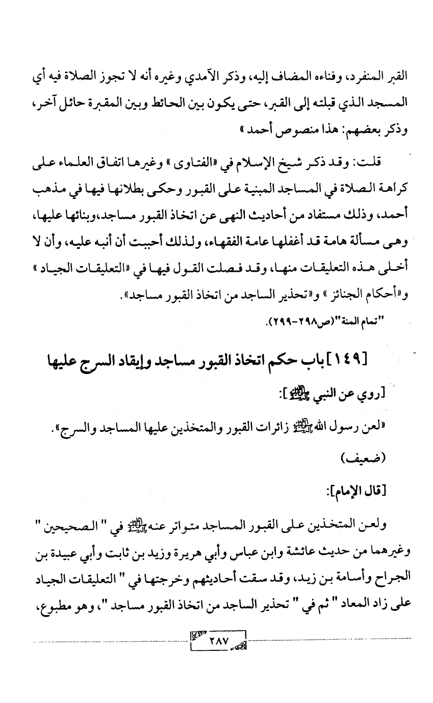 [149] باب حكم اتخاذ القبور مساجد وإيقاد السرج عليها