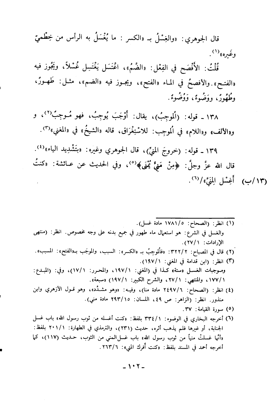 139 - قوله: (خروجَ المنيِّ)، قال الجوهري وغيره: "بتَشْدِيد الياء" (¬4).