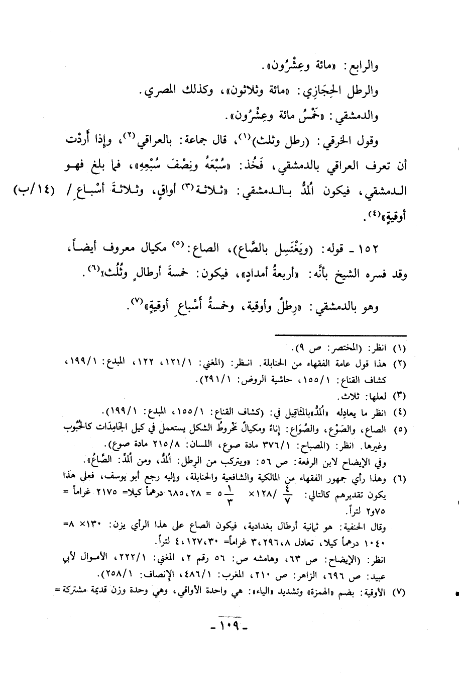 (¬4) انظر ما يعادِله "المُدُّ" بالمثَاقِيل في: (كشاف القناع: 1/ 155، المبدع: 1/ 199).