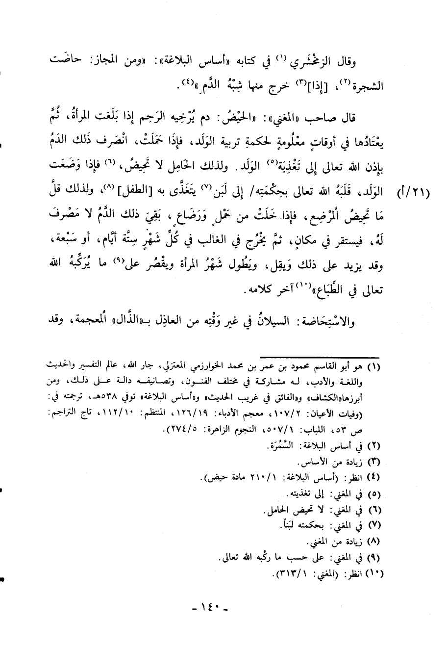 (¬4) انظر: (أساس البلاغة: 1/ 210 مادة حيض).