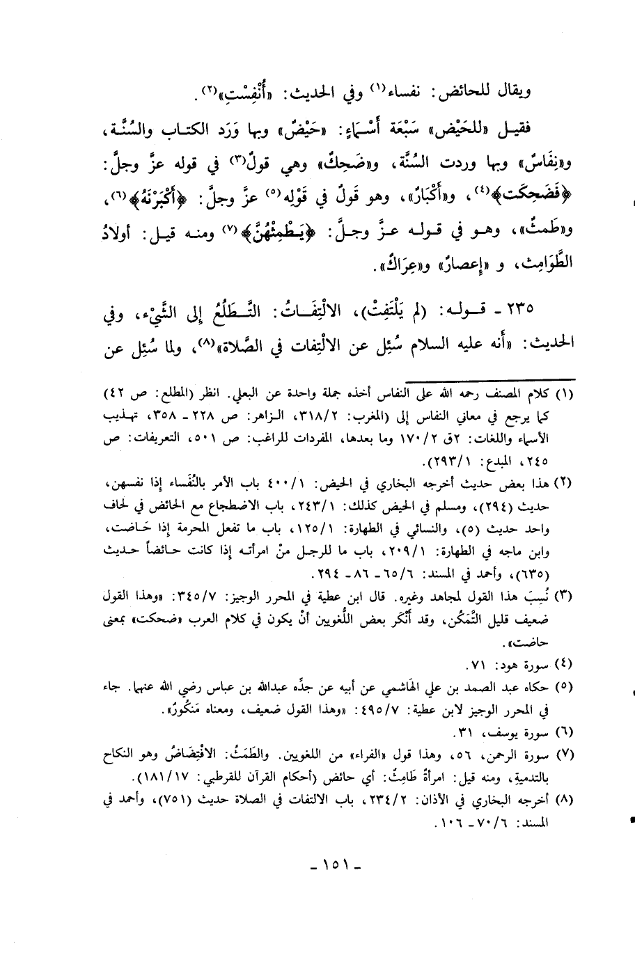 (¬2) هذا بعض حديث أخرجه البخاري في الحيض: 1/ 400 باب الأمر بالنُفَساء إِذا نفسهن، حديث (294)، ومسلم في الحيض كذلك: 1/ 243، باب الاضطجاع مع الحائض في لحاف واحد حديث (5)، والنسائي في الطهارة: 1/ 125، باب ما تفعل المحرمة إِذا حَاضت، وابن ماجه في الطهارة: 1/ 209، باب ما للرجل منْ امرأته إِذا كانت حائضاً حديث (635)، وأحمد في المسند: 6/ 65 - 86 - 294.