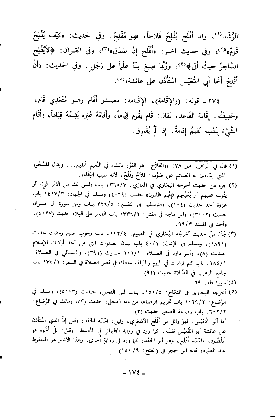 الرُّشْد (¬1)، وقد أَفْلَح يُفْلِحُ فَلاحاً، فهو مُفْلِحٌ. وفي الحديث: "كيْف يُفْلِحُ قَوْمٌ" (¬2)، وفي حديث آخر: "أَفْلَح إِنْ صَدَق" (¬3)، وفي القرآن: {وَلَا يُفْلِحُ السَّاحِرُ حَيْثُ أَتَى} (¬4)، ورُبَّما صِيغَ مِنْهُ علَماً على رَجُلٍ. وفي الحديث: "أَنَّ أَفْلَحَ أَخَا أَبِي القُعَيْس اسْتَأْذَن على عائشة" (¬5).