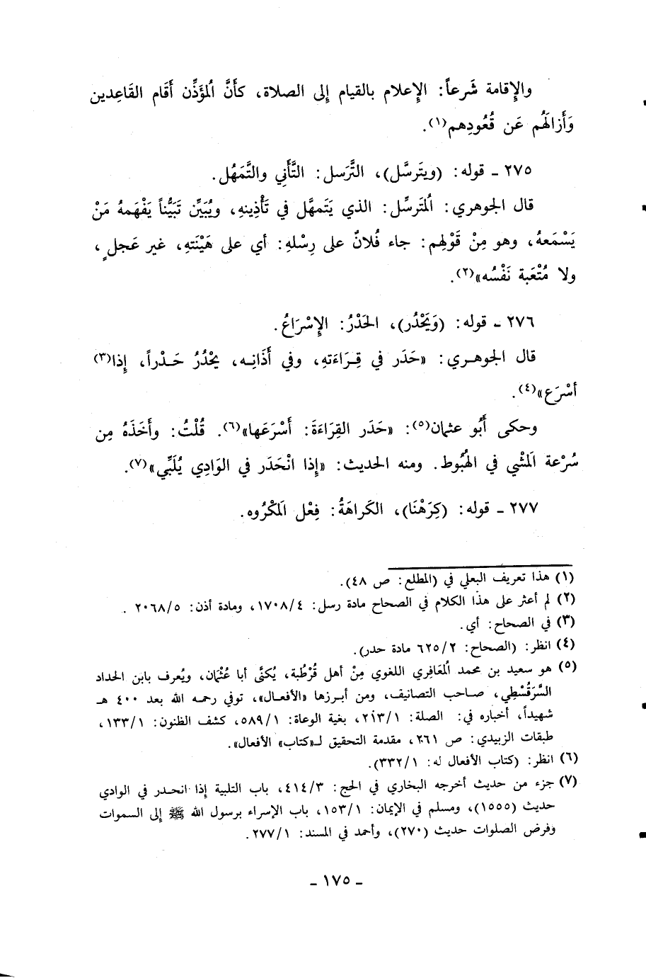 275 - قوله: (ويتَرسَّل)، التَّرَسل: التَّأَنِي والتَّمَهُل.