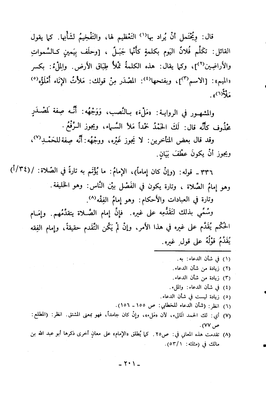 (¬8) تقدمت هذه المعاني في: ص 25. كما يُطلق "الإِمام" على معان أخرى ذكرها أبو عبد الله بن مالك في (مثلثه: 1/ 53).