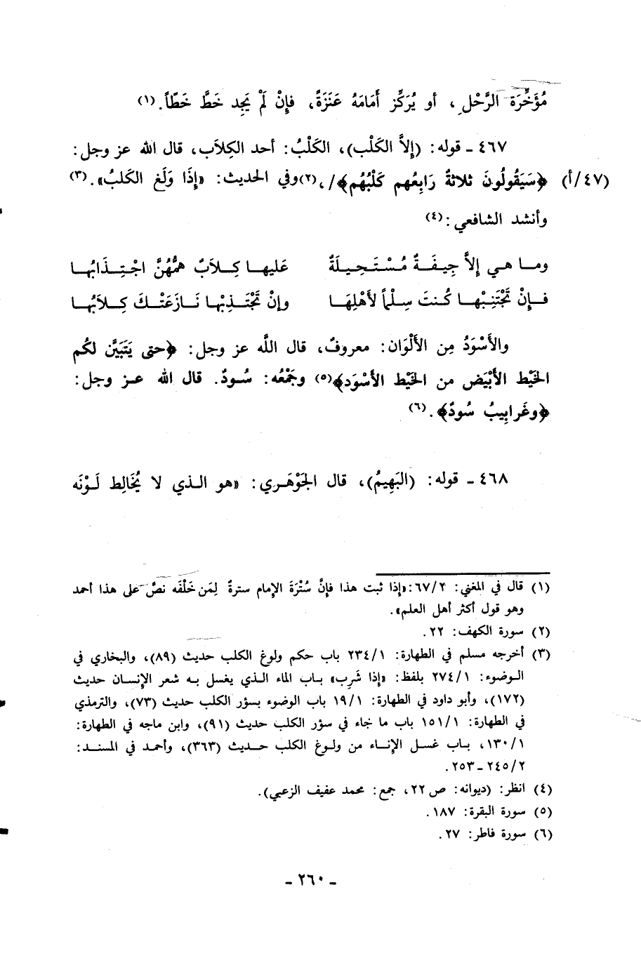 467 - قوله: (إلَّا الكَلْب)، الكَلْبُ: أحد الكِلاَب، قال الله عزَّ وجلَّ: {سَيَقُولُونَ ثَلَاثَةٌ رَابِعُهُمْ كَلْبُهُمْ}، (¬2) وفي الحديث: "إِذَا وَلَغ الكَلبُ". (¬3) وأنشد الشافعي: (¬4)
