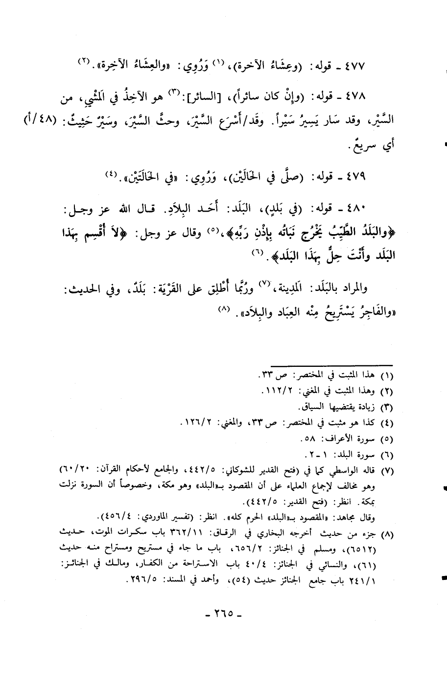480 - قوله: (في بَلدٍ)، البَلَد: أَحَد البِلاَدِ. قال الله عزَّ وجلَّ: {وَالْبَلَدُ الطَّيِّبُ يَخْرُجُ نَبَاتُهُ بِإِذْنِ رَبِّهِ}، (¬5) وقال عزَّ وجلَّ: {لَا أُقْسِمُ بِهَذَا الْبَلَدِ وَأَنْتَ حِلٌّ بِهَذَا الْبَلَدِ}. (¬6)