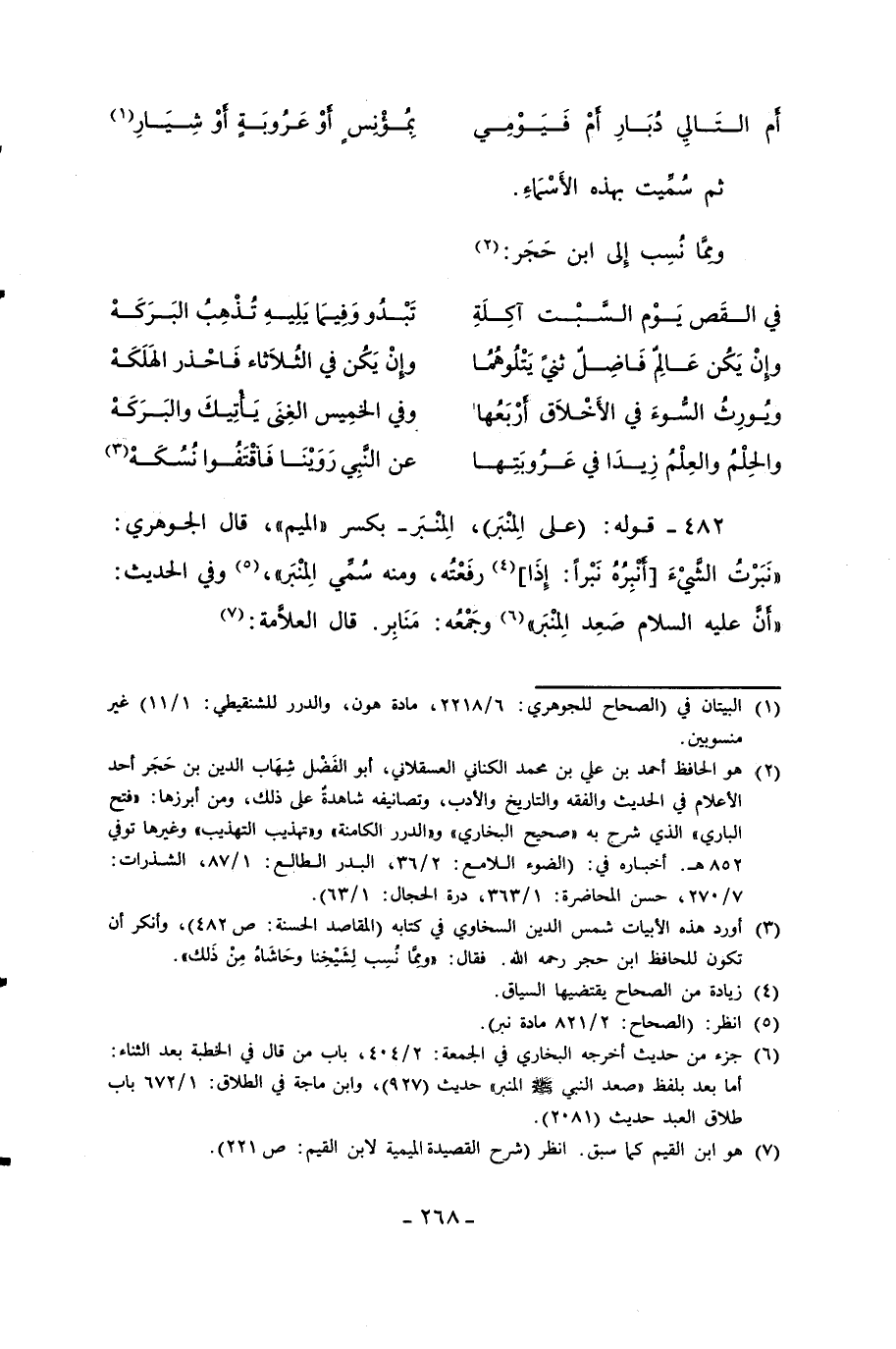 (¬7) هو ابن القيم كما سبق. انظر (شرح القصيدة الميمية لابن القيم: ص 221).