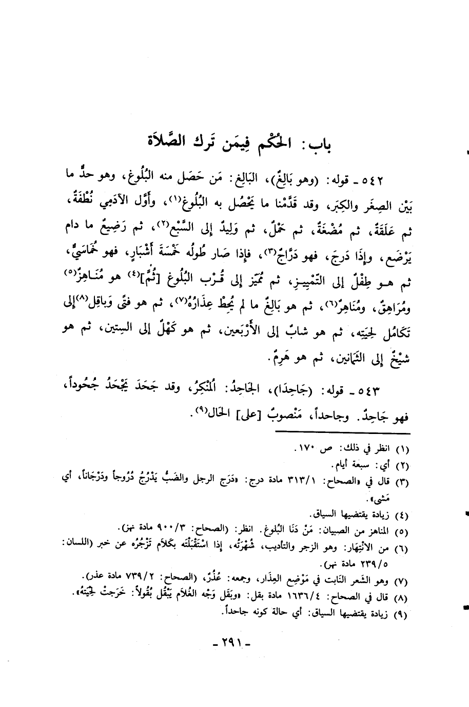 542 - قوله: (وهو بَالِغٌ)، البَالِغ: مَن حَصَل منه البُلُوغ، وهو حدٌّ ما بَيْن الصِغَر والكِبَر، وقد قَدَّمْنا ما يَحْصُل به البُلُوغ (¬1)، وأوَّل الآدَمِي نُطْفَةٌ، ثم عَلَقَةٌ، ثم مُضْغَةٌ، ثم حَمْلٌ، ثم وَليدٌ إلى السَّبْع (¬2)، ثم رَضِيعٌ ما دام يَرْضَع، وإِذَا دَرجَ، فهو دَرَّاجٌ (¬3)، فإذا صَار طُولُه خَمْسَةَ أشْبَارٍ، فهو خُمَاسَيٌّ، ثم هو طِفْلٌ إِلى التّمْيِيزِ، ثم مُميّز إلى قُرْب البُلُوغ [ثُم]، (¬4) هو مُنَاهِزٌ (¬5) ومُرَاهِقٌ، ومُنَاهِرٌ (¬6)، ثم هو بَالِغ ما لم يُحِطْ عِذَارُهُ (¬7)، ثم هو فتًى وَباقِل (¬8) إلى تَكَامُل لحِيَته، ثم هو شابٌ إِلى الأرْبَعين، ثم هو كَهْلٌ إِلى السِتين، ثم هو شيْخٌ إلى الثَمَانين، ثم هو هَرِمٌ.