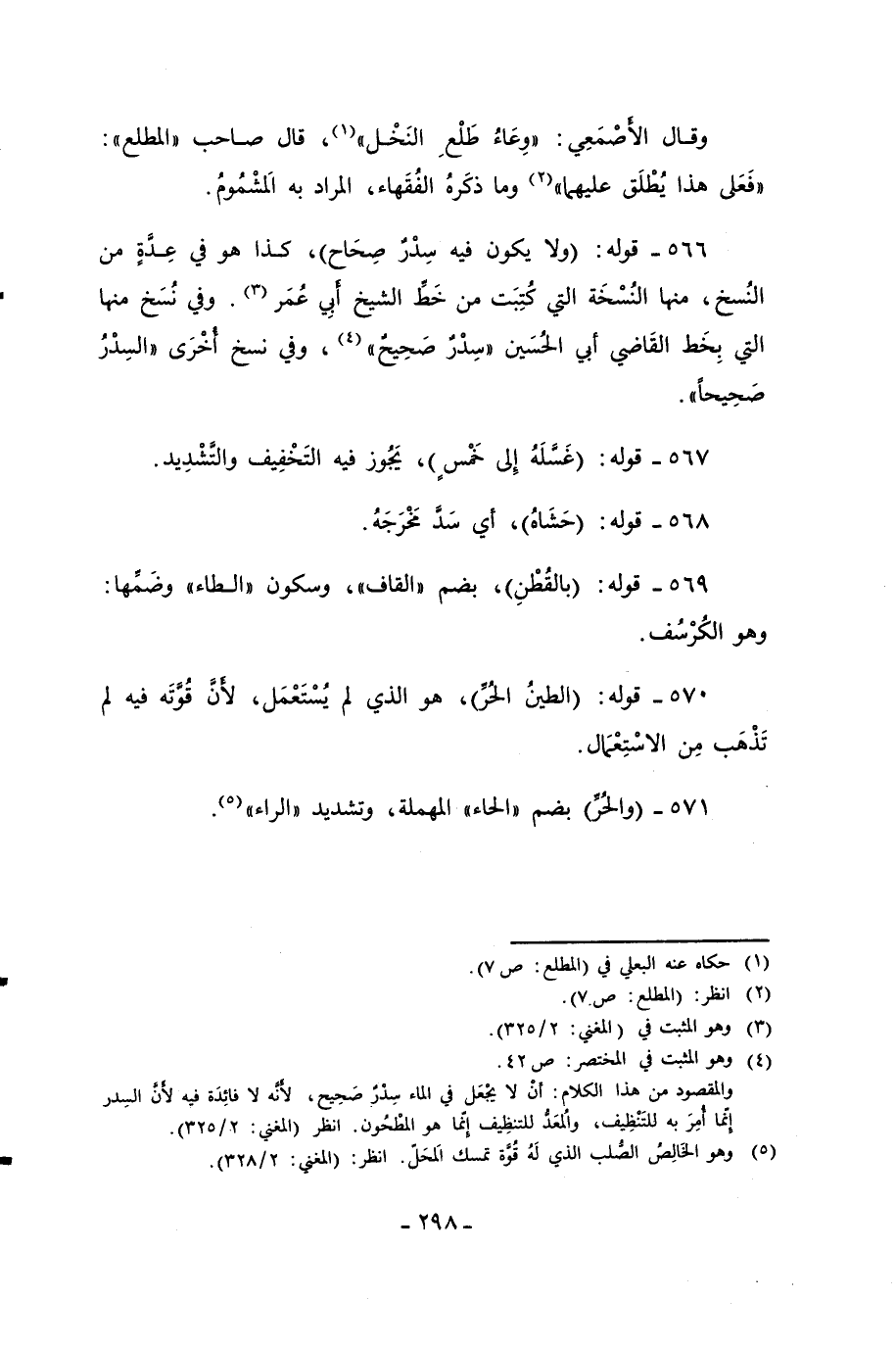 566 - قوله: (ولا يكون فيه سِدْرٌ صِحَاح)، كذا هو في عِدَّةٍ من النُسخ، منها النُسْخَة التي كُتِبَت من خَط الشيخ أبِي عُمَر (¬3). وفي نُسَخ منها التي بِخَط القَاضي أبي الحُسَين "سِدْرٌ صَحِيحٌ" (¬4)، وفي نسخ أُخْرَى "السِدْرُ صَحِيحاً".