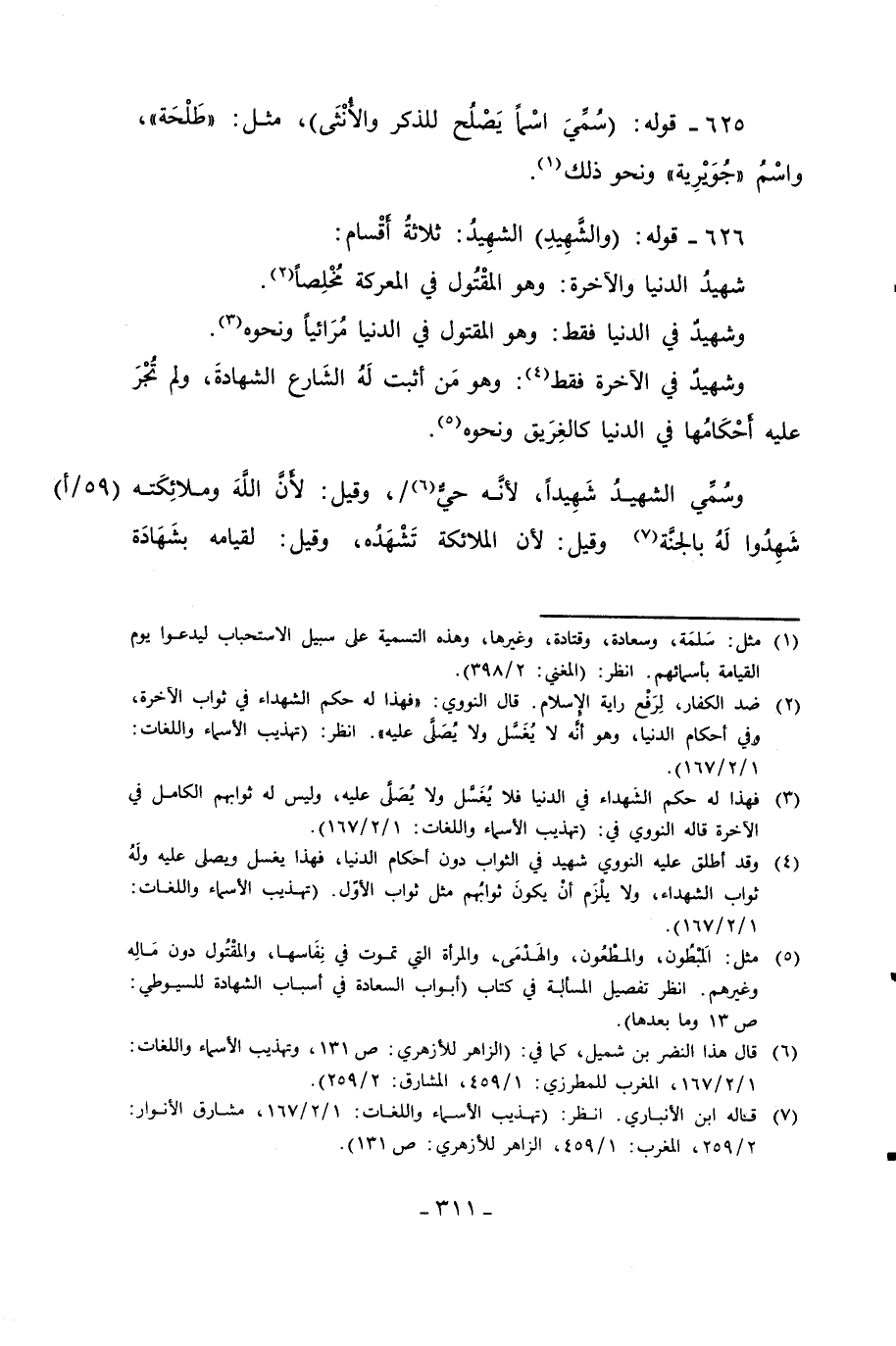 626 - قوله: (والشَّهِيدِ) الشهِيدُ: ثلاثةُ أقْسام: