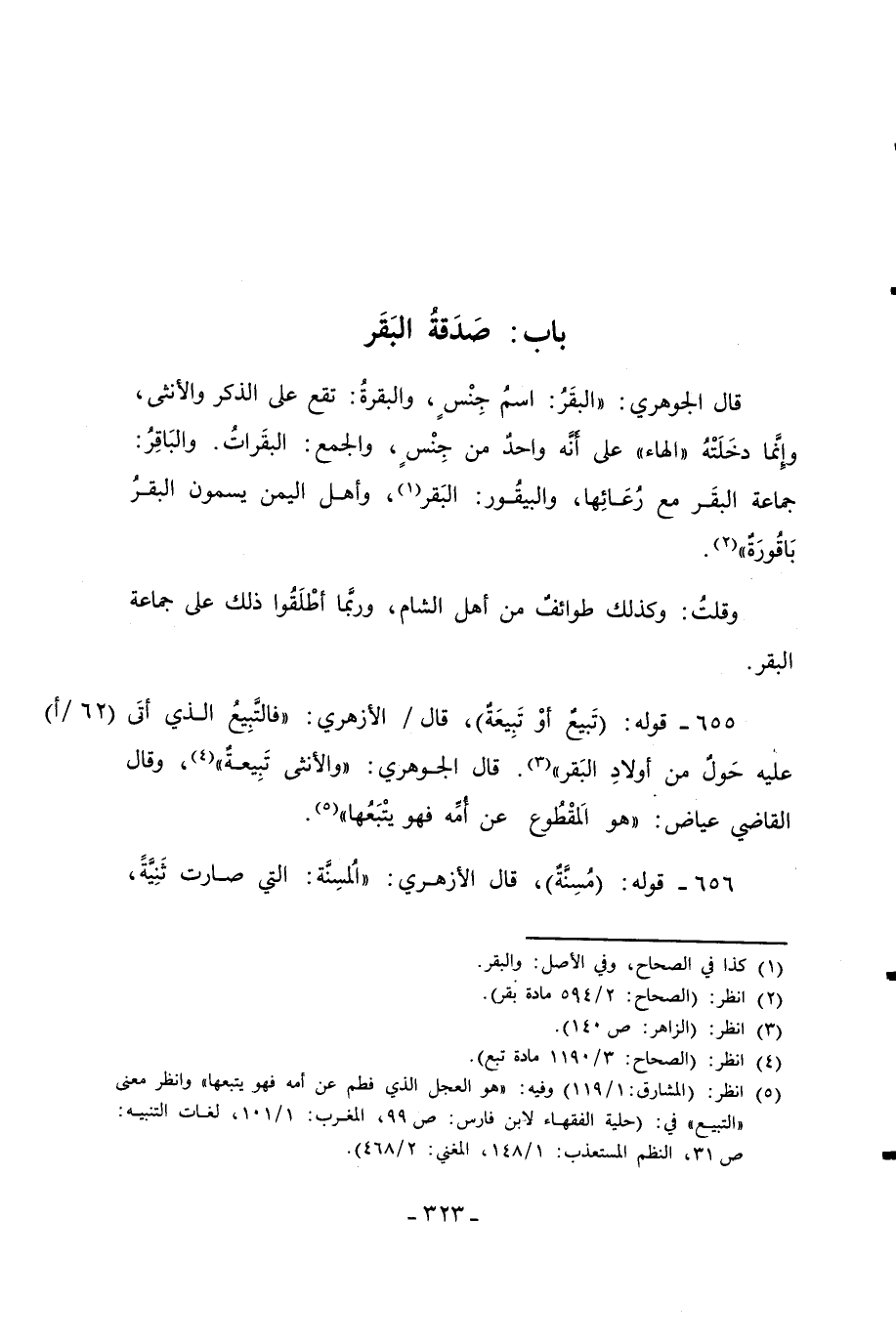 (¬5) انظر: (المشارق: 1/ 119) وفيه: "هو العجل الذي فطم عن أمه فهو يتبعها" وانظر معنى "التبيع" في: (حلية الفقهاء لابن فارس: ص 99، الغرب: 1/ 101، لغات التنبيه: ص 31، النظم المستعذب: 1/ 148، المغني: 2/ 468).