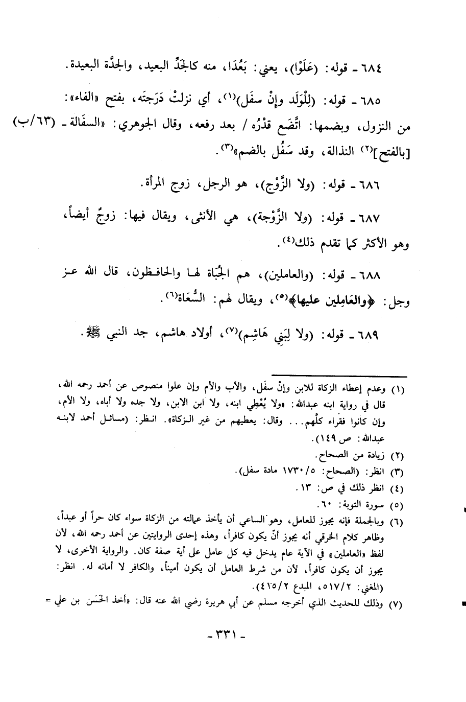 689 - قوله: (ولا لِبَنِي هَاشِم) (¬7)، أولاد هاشم، جد النبي - صلى الله عليه وسلم -.