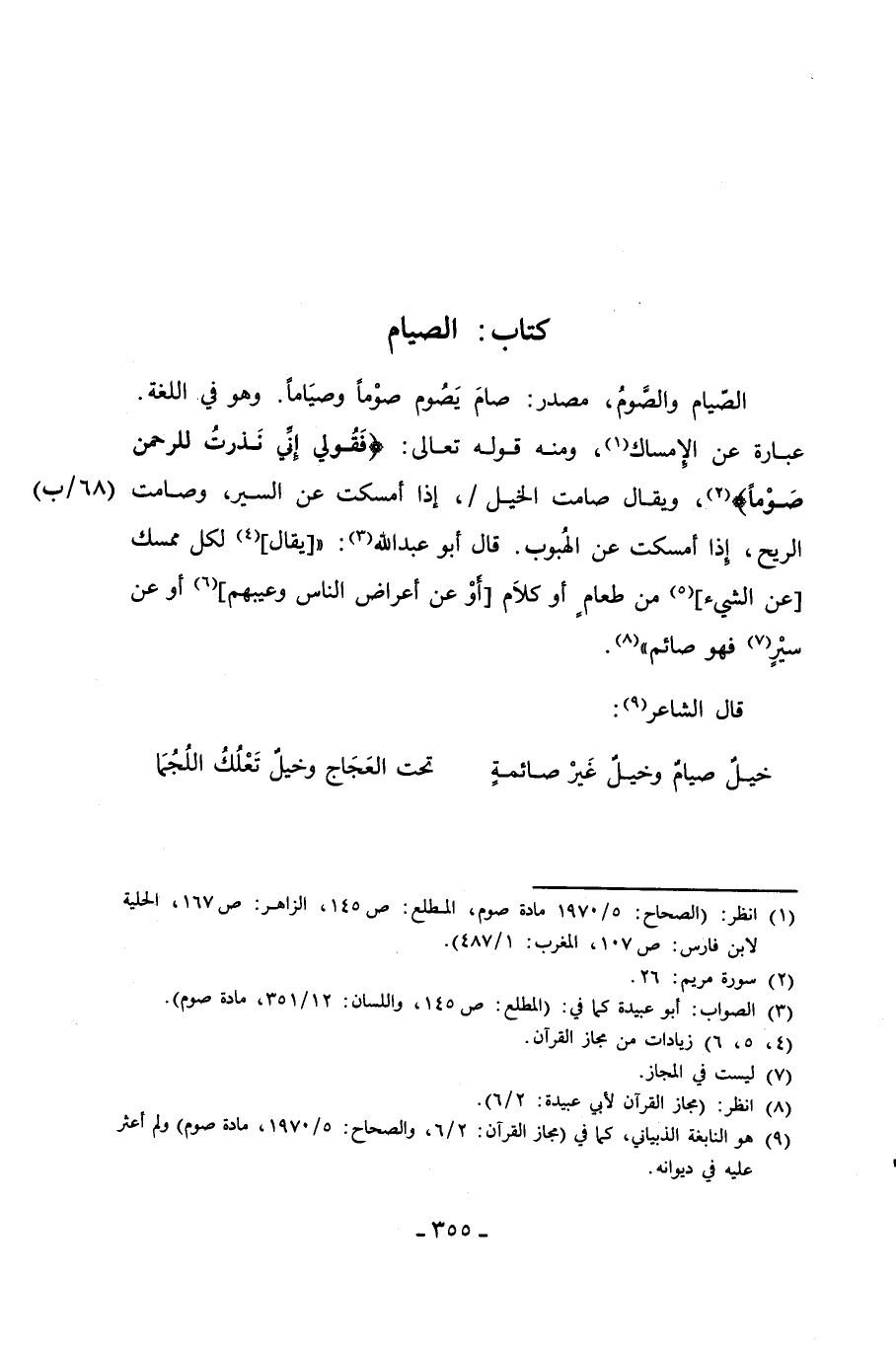 (¬1) انظر: (الصحاح: 5/ 1970 مادة صوم، المطلع: ص 145، الزاهر: ص 167، الحلية لابن فارس: ص 107، المغرب: 1/ 487).
