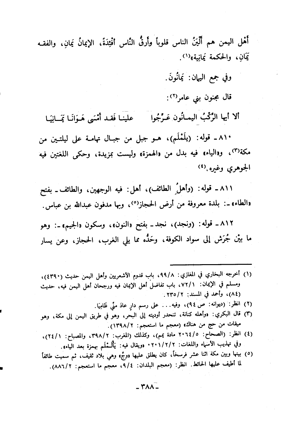 810 - قوله: (يلَمْلَم)، هو جبل من جبال تهامة على ليلتين من مكة (¬3)، و"الياء" فيه بدل من "الهمزة" وليست بمزيدة، وحكى اللغتين فيه الجوهري وغيره. (¬4)