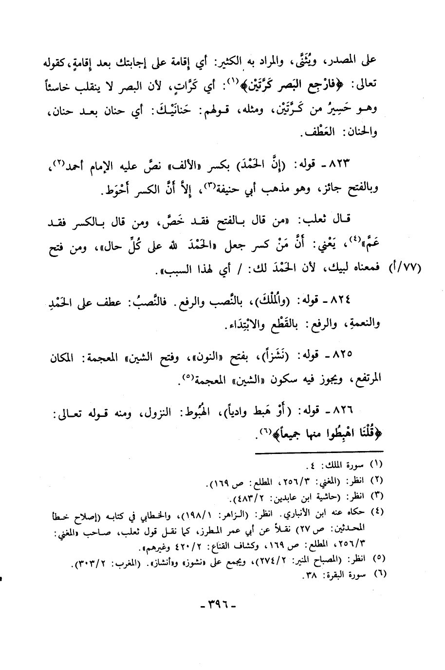 (¬4) حكاه عنه ابن الأنباري. انظر: (الزاهر: 1/ 198)، والخطابي في كتابه (إصلاح خطأ المحدثين: ص 27) نقلًا عن أبي عمر المطرز، كما نقل قول ثعلب، صاحب "المغني: 3/ 256، المطلع: ص 169، وكشاف القناع: 2/ 420 وغيرهما.