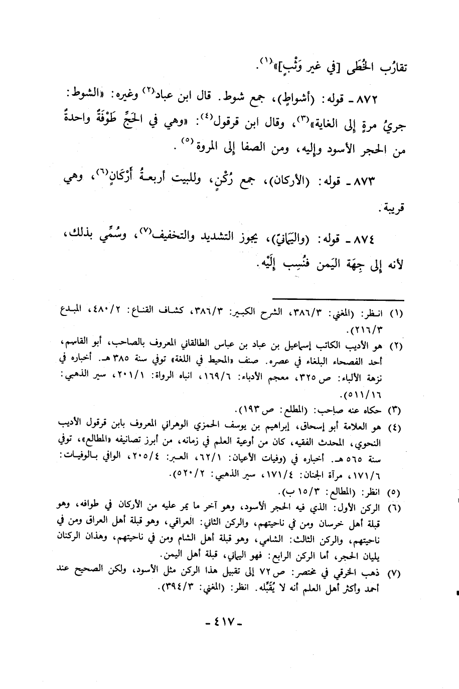 873 - قوله: (الأركان)، جمع رُكْنٍ، وللبيت أربعةُ أرْكَانٍ (¬6)، وهي قريبة.