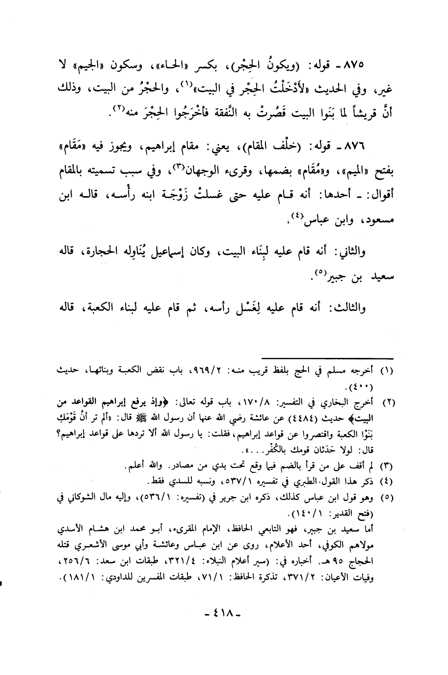 (¬2) أخرج البخاري في التفسير: 8/ 170، باب قوله تعالى: {وَإِذْ يَرْفَعُ إِبْرَاهِيمُ الْقَوَاعِدَ مِنَ الْبَيْتِ} حديث (4484) عن عائشة رضي الله عنها أن رسول الله - صلى الله عليه وسلم - قال: "ألم تر أنَّ قَوْمَكِ بَنَوْا الكعبة واقتصروا عن قواعد إبراهيم، فقلت: يا رسول الله ألا تردها على قواعد إبراهيم؟ قال: لولا حَدَثان قومك بالكُفْر ... ".