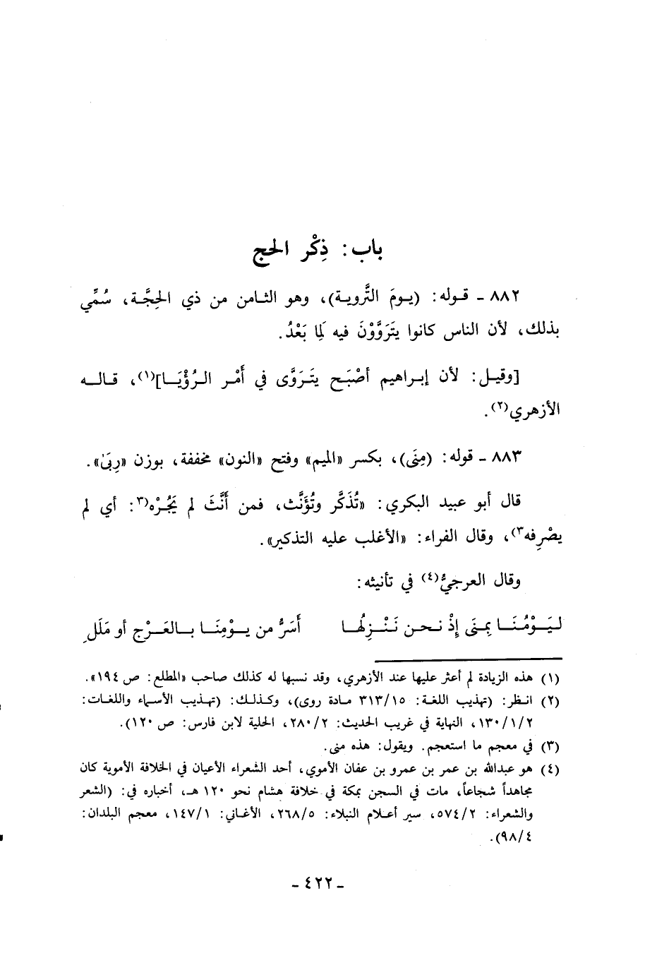 883 - قوله: (مِنَى)، بكسر "الميم" وفتح "النون" مخففة، بوزن "رِبَى".