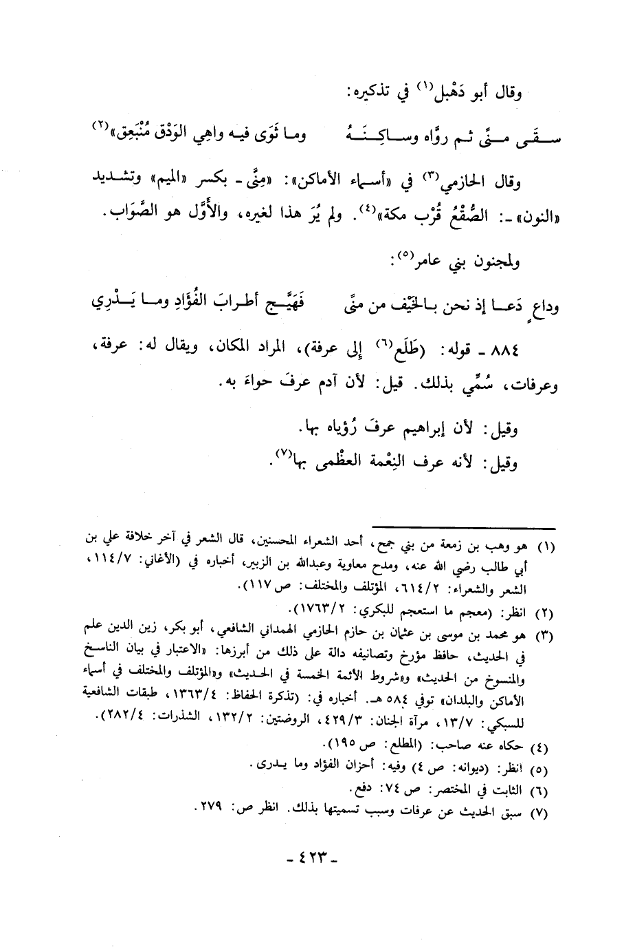 (¬7) سبق الحديث عن عرفات وسبب تسميتها بذلك. انظر ص: 279.
