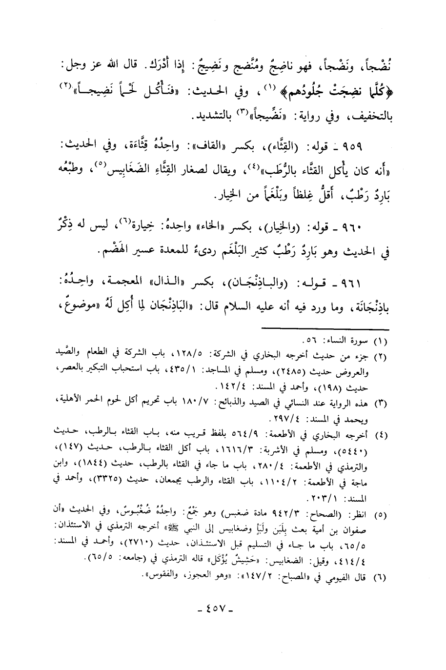 961 - قوله: (والباذِنْجَان)، بكسر "الذال" المعجمة، واحِدُهُ: باذِنْجَانَة، وما ورد فيه أنه عليه السلام قال: "البَاذِنْجَان لمِا أُكِل لَهُ "موضوعٌ،