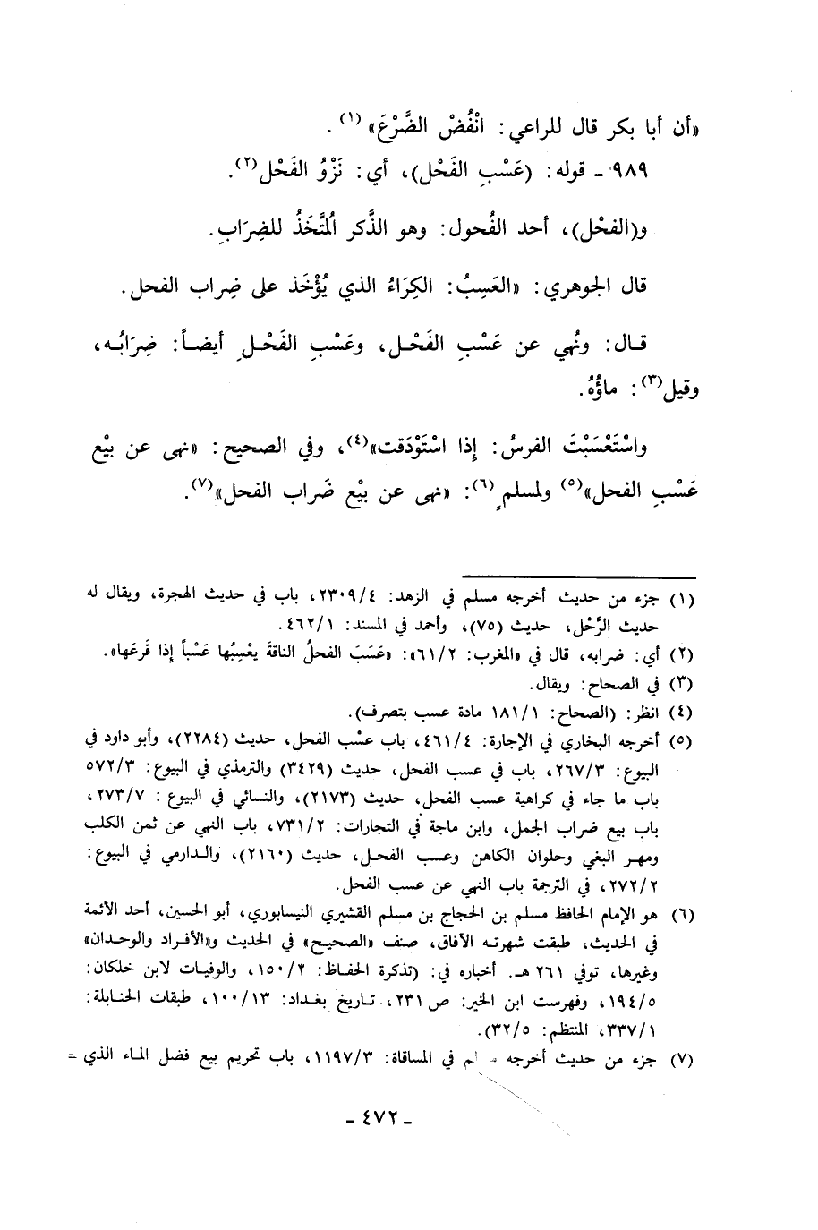 1989 - قوله: (عَسْبِ الفَحْل)، أي: نَزْوُ الفَحْل (¬2).