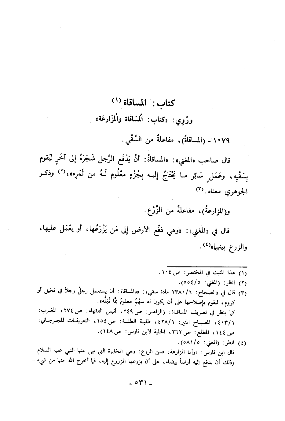 1079 - (المساقاةُ)، مفاعلةٌ من السَّقْي.