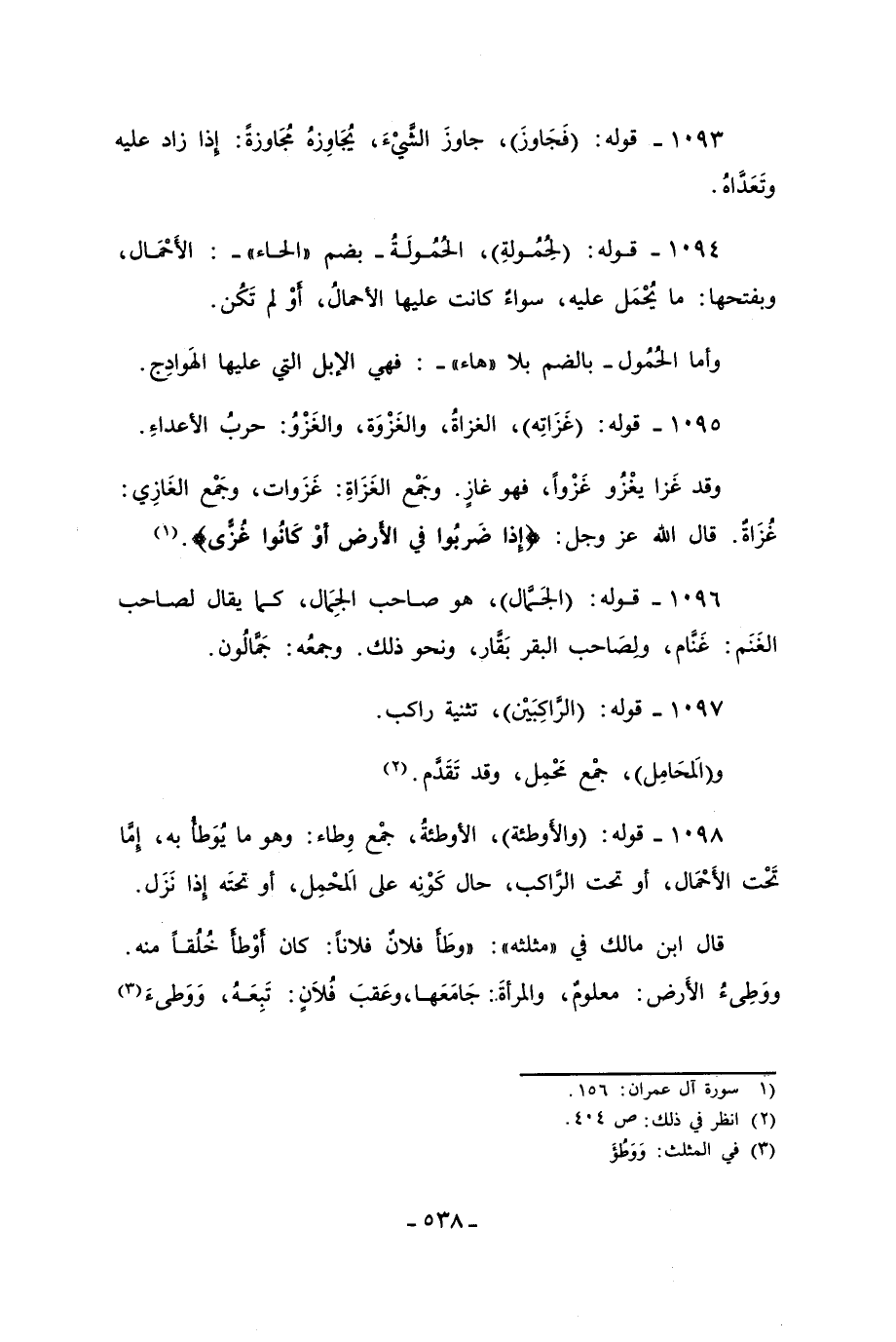 1094 - قوله: (لِحمُولةِ)، الحمُولَةُ - بضم " الحاء" -: الأَحْمَال، وبفتحها: ما يُحْمَل عليه، سواءٌ كانت عليها الأحمالُ، أوْ لم تَكُن.