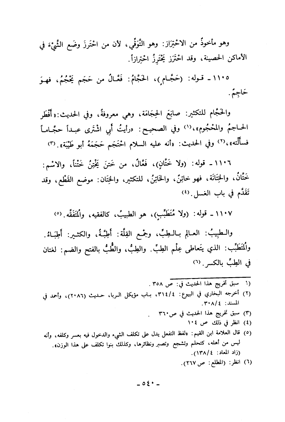 1107 - قوله: (ولا مُتَطَبِّب)، هو الطبيبُ، كالفقيه، والُمتَفَقِّه. (¬5)