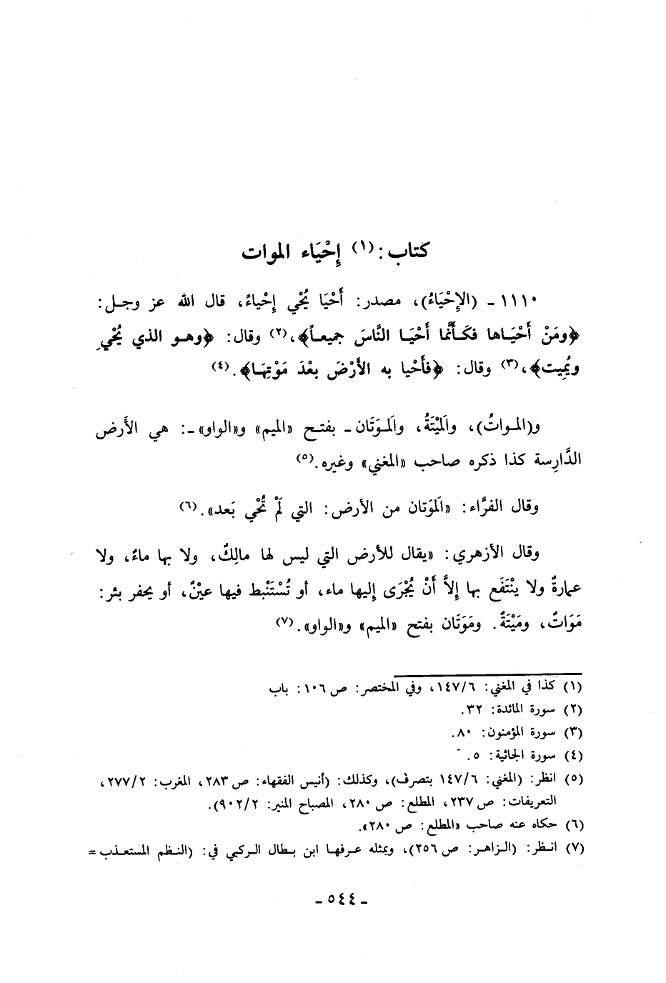 1110 - (الإِحْيَاءُ)، مصدر: أحْيَا يُحْي إِحْياءً قال الله عز وجل: {وَمَنْ أَحْيَاهَا فَكَأَنَّمَا أَحْيَا النَّاسَ جَمِيعًا} (¬2) وقال: {وَهُوَ الَّذِي يُحْيِي وَيُمِيتُ} (¬3) وقال: {فَأَحْيَا بِهِ الْأَرْضَ بَعْدَ مَوْتِهَا} (¬4).